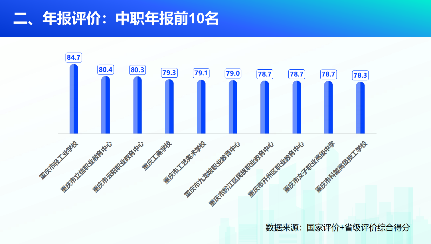 2025年5月30日,2025年重庆市职业教育评价改革研讨会在重庆商务职业学院召开。会议通报了重庆市职业教育质量年报综合评价结果,我校取得全市中职第1名、全国中职第7名的优异成绩。