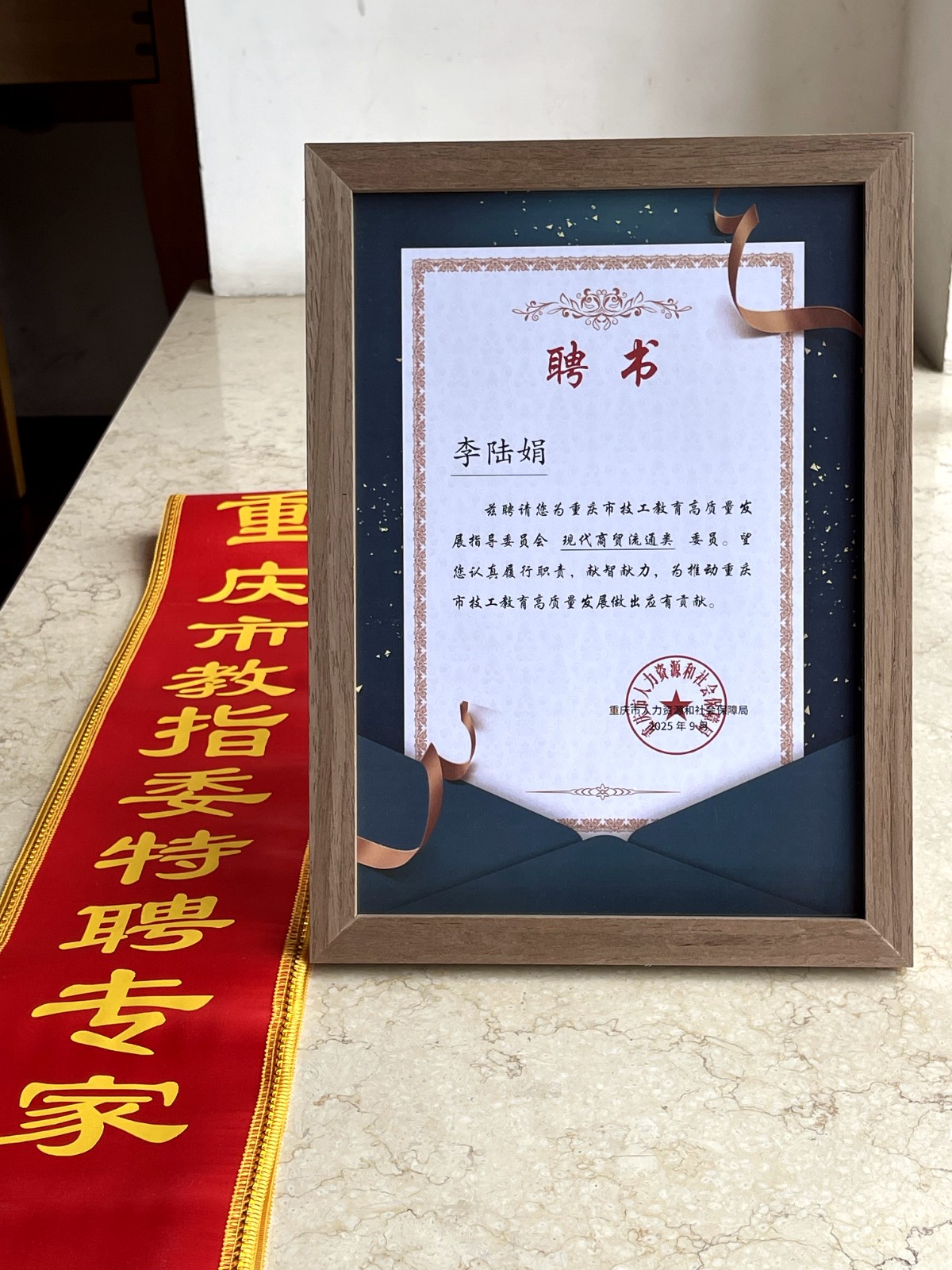 9月8日,国务院政府特殊津贴专家、全国技术能手、重庆市工艺美术大师、重庆英才・技术技能领军人才李陆娟,受邀出席全市技工院校庆祝教师节座谈会,并受聘为重庆市技工教育高质量发展指导委员会“现代商贸流通类”委员,以专家大师之姿,为重庆技工教育发展注入新动能。