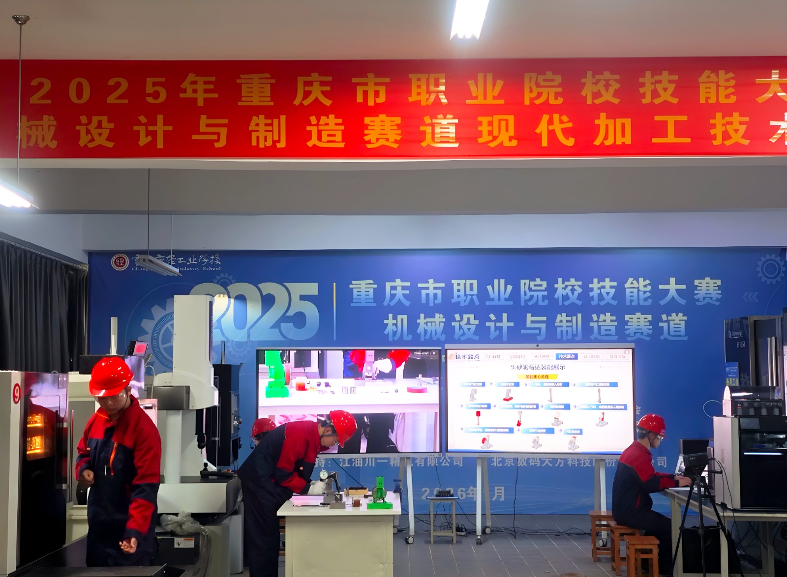 2026年1月20日至23日,2025年重庆市职业院校技能大赛机械设计与制造赛道中职组比赛在重庆市轻工业学校圆满收官。本次大赛由重庆市教育委员会、重庆市经济和信息化委员会、重庆市财政局、重庆市人力资源和社会保障局联合主办,重庆市轻工业学校作为该赛道承办单位,高质量完成了赛事全流程组织工作。