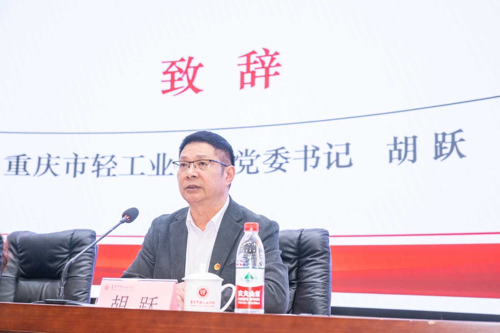 学校党委书记胡跃同志代表学校党委致辞。他指出,本次团代会是学校团员青年政治生活中的一件大事,是在“十五五”规划开局起步之年召开的一次青春盛会。他充分肯定第四届团委在思想引领、组织建设、实践育人等方面取得的显著成效,并寄语全校团员青年要坚定理想信念,练就过硬本领,勇担时代重任,将个人成长融入国家发展和学校“双优”建设大局,在技能报国的生动实践中践行“请党放心,强国有我”的青春誓言。