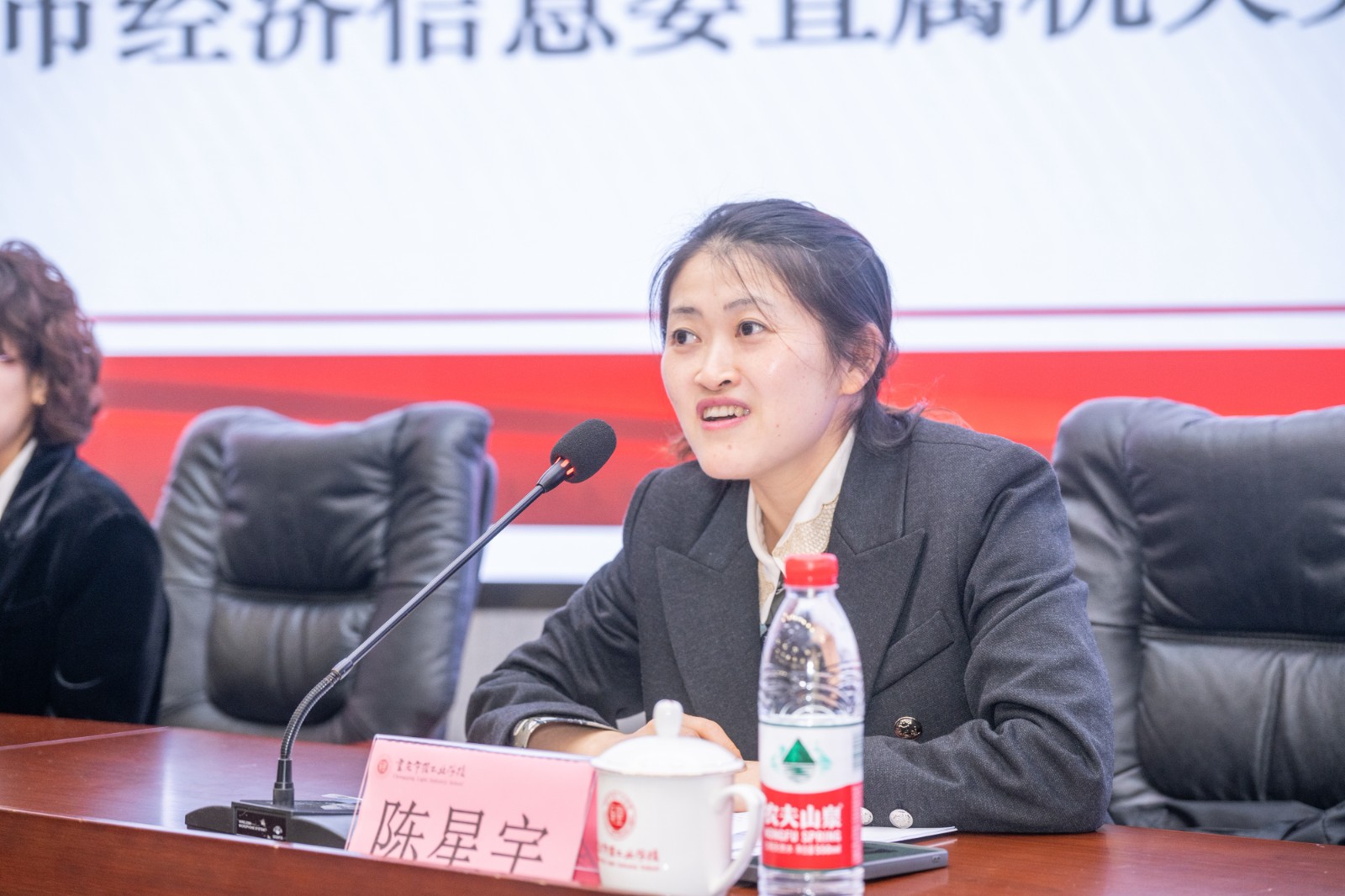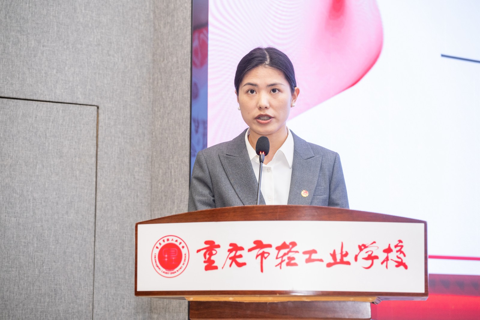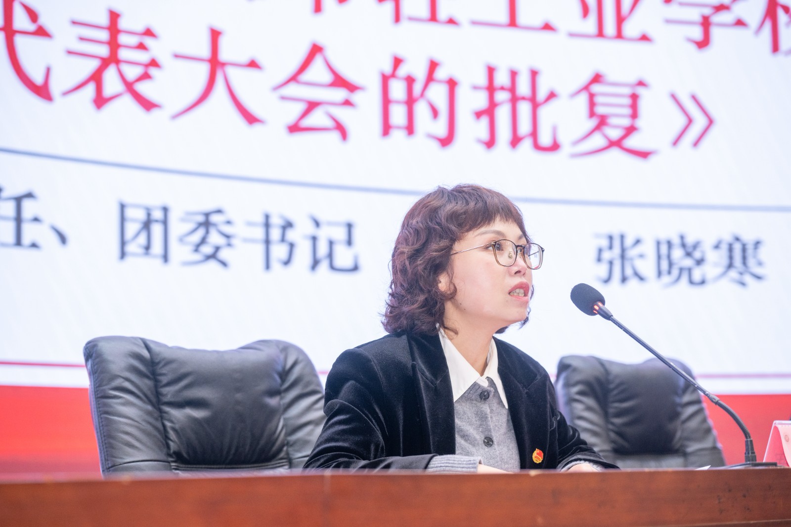 在热烈的掌声中,市经济信息委直属机关党委专职副书记陈星宇同志发表讲话。她代表上级党团组织对大会的成功召开和新当选的委员表示热烈祝贺,并对学校党委长期以来对共青团工作的高度重视和坚强领导给予充分肯定。她强调,共青团是党的助手和后备军,希望新一届团委在学校党委的领导下,持续强化思想政治引领,紧紧围绕立德树人根本任务,团结带领广大团员青年在技能成才、技能报国的道路上奋勇争先,为重庆制造业高质量发展和“33618”现代制造业集群体系建设贡献轻校青年的智慧和力量。